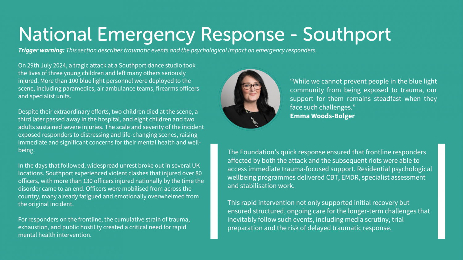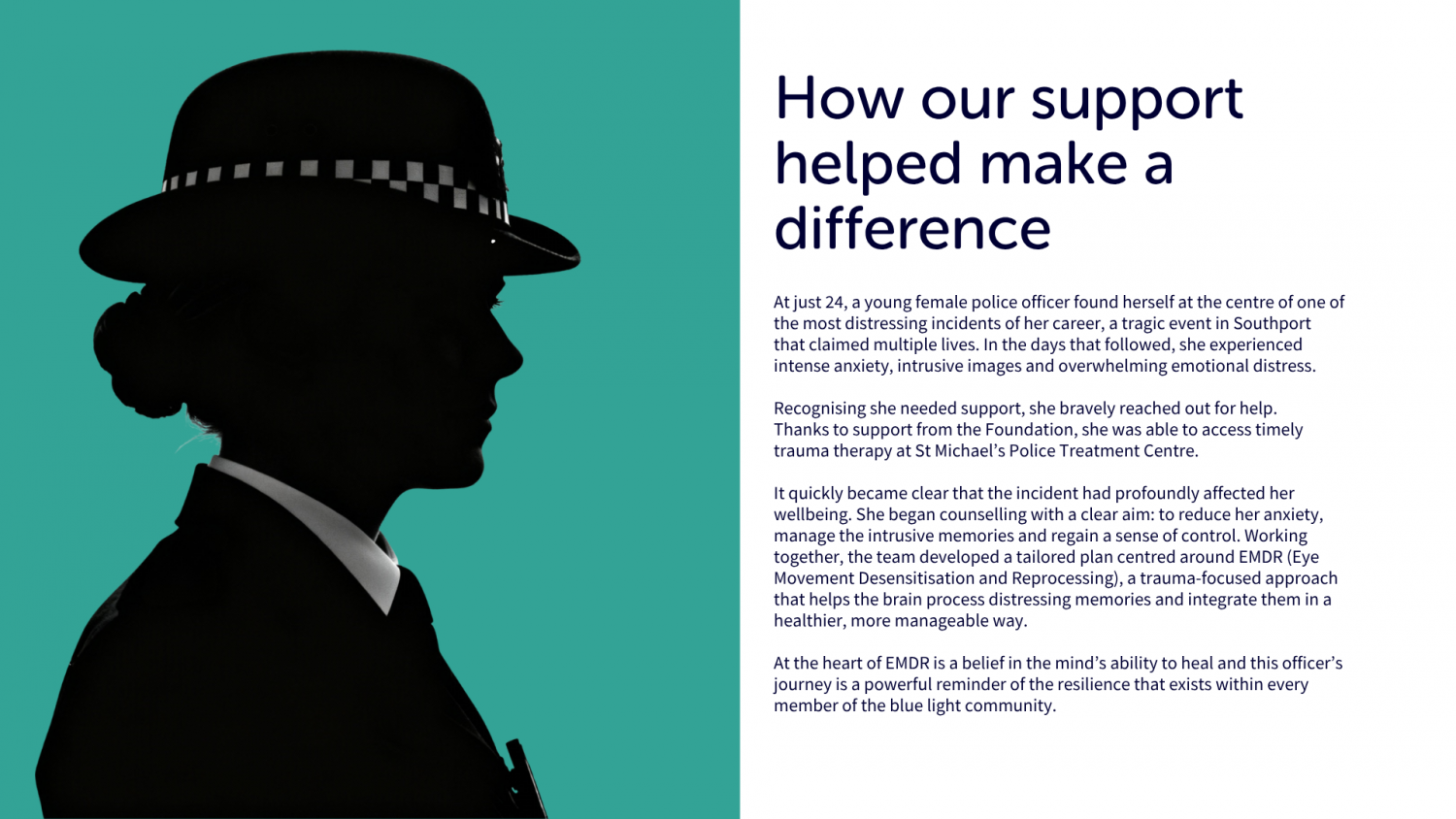 In moments of crisis, our goal is simple, to stand alongside our Blue Light community and ensure that the right support is there when it is needed.